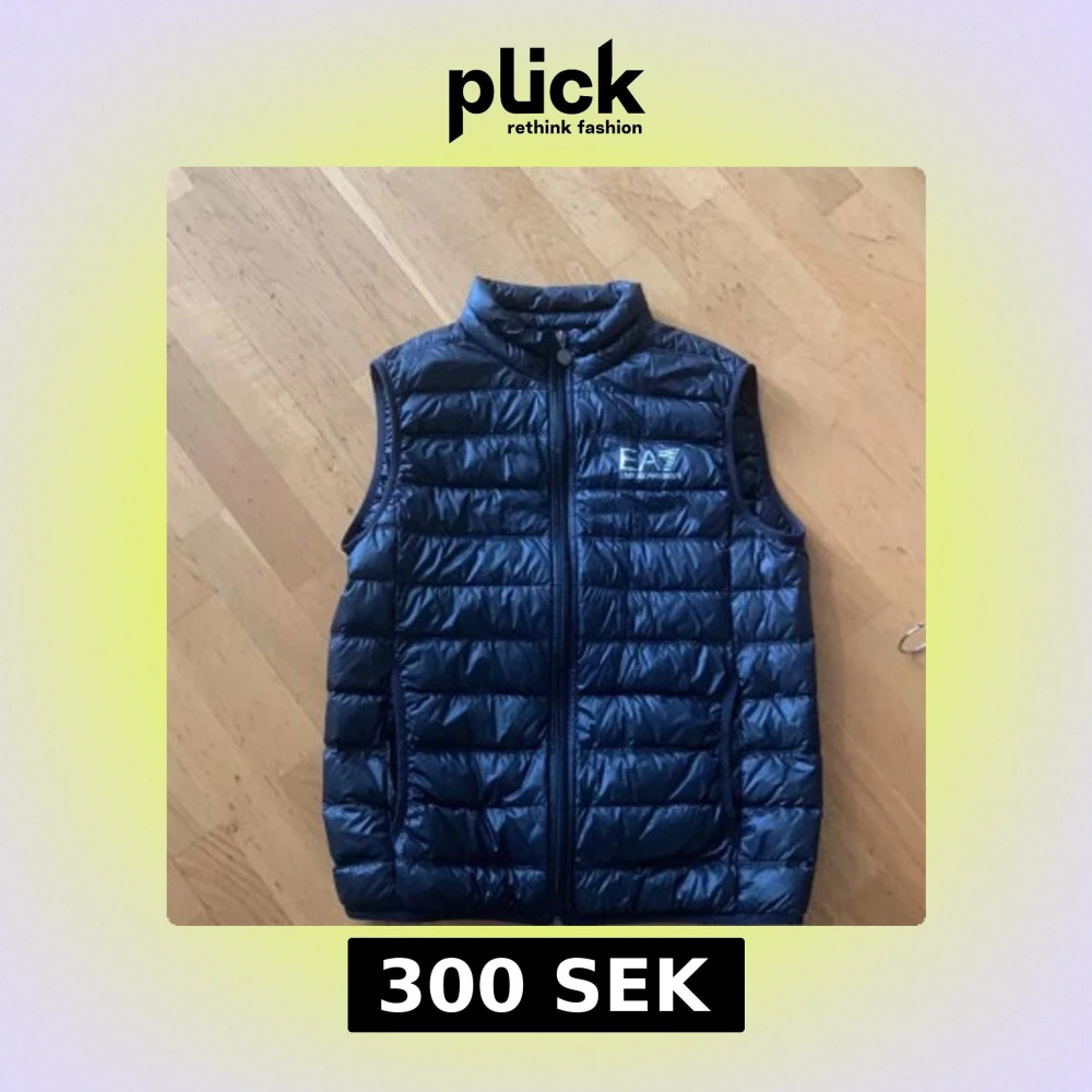 Snygg svart dunväst från Emporio Armani EA7 med quiltad design och hög krage. Västen har dragkedja framtill och logga på bröstet. Perfekt att slänga över en hoodie eller tröja för extra värme. Klassisk och stilren look.