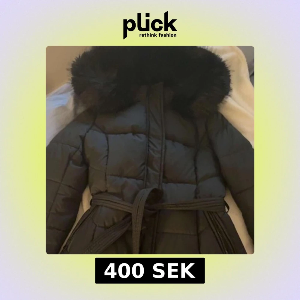 Säljer en svart lång pufferjacka med stor fluffig fuskpäls på huvan och bälte i midjan. Jackan har quiltad design, dragkedja och knappar framtill. Perfekt för kalla dagar när du vill vara både varm och snygg. Passar xs och s