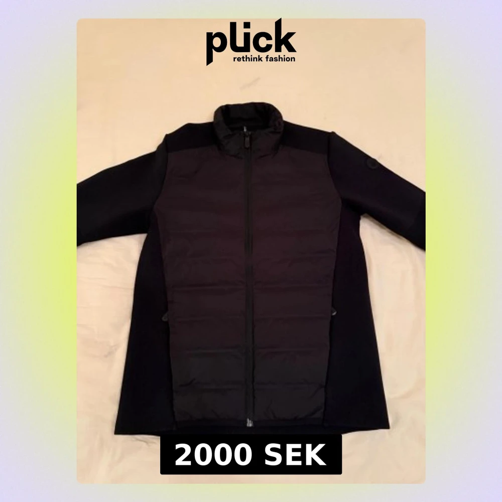 Stilren svart cardigan jacka med quiltad front och hel dragkedja. Jackan har långärmade stickade partier på ärmar och sidor, samt hög krage för extra värme. Perfekt för lager-på-lager och enkel att matcha med olika outfits. Köpt på Collection of Brands i Sollentuna Centrum. Nypris: 3000 kr