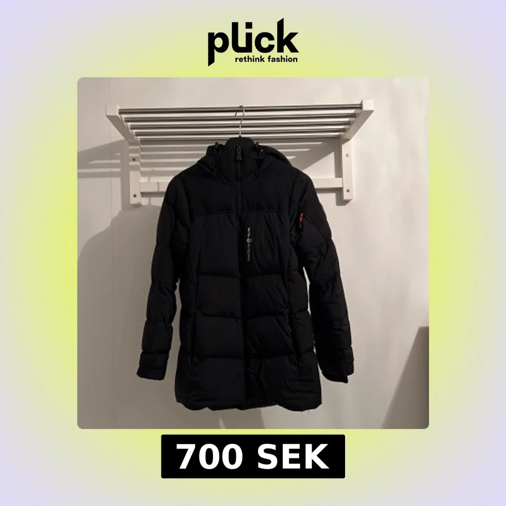 Svart pufferjacka från Sail Racing med huva och snygga detaljer som logopatch på ärmen och dragkedja framtill. Jackan har en clean look, är långärmad och har en orange zip-pull på ärmfickan. Perfekt för kalla dagar och har en schysst passform. Det finns även en ficka där tvättrådslappen sticker utifrån!