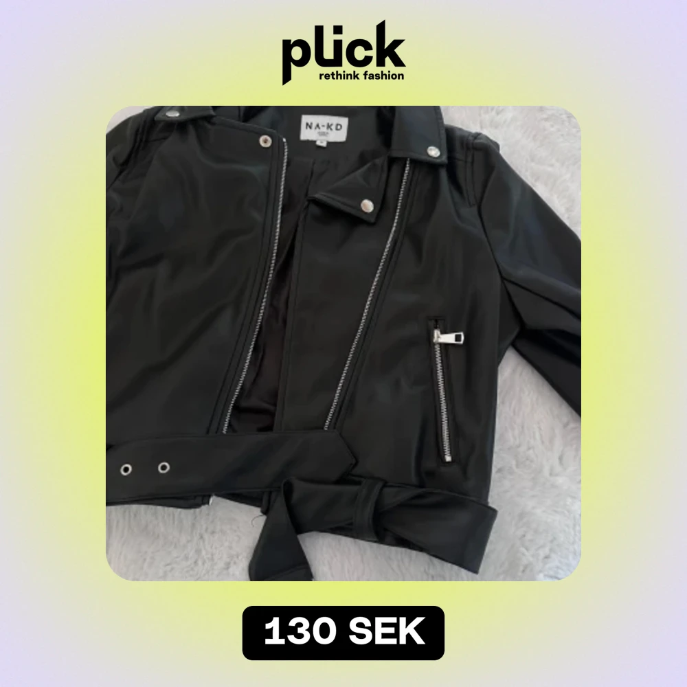 En skinnjacka från NA-KD i storlek 36 men funkar för en M om man vill ha den lite tightare. Den är i helt nyskick och har inga skavanker! Hör av er vi frågor💗