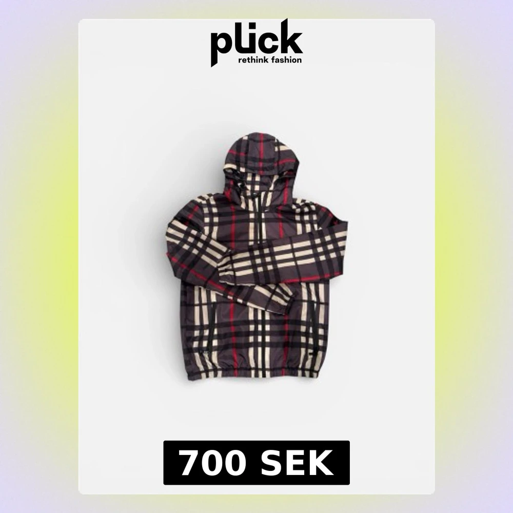 Rutig vindjacka med huva från burberry