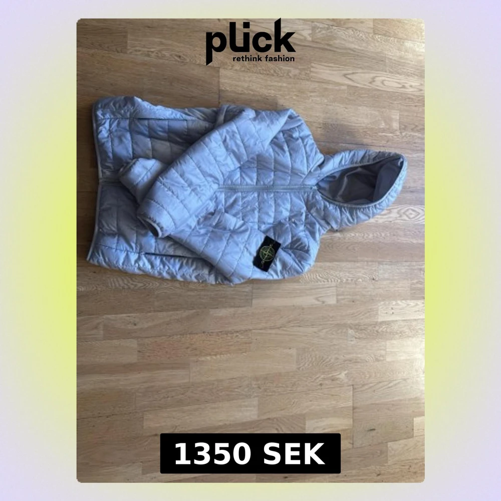 Säljer en ljusgrå quiltad pufferjacka från Stone Island med huva och dragkedja framtill. Jackan har den klassiska Stone Island-loggan på ärmen och är tillverkad i syntetmaterial. Perfekt för dig som vill ha en clean och stilren look. Fick i julklapp, lite för liten för mig. Använd enstaka gånger. Storleken M men passar även dig som har S