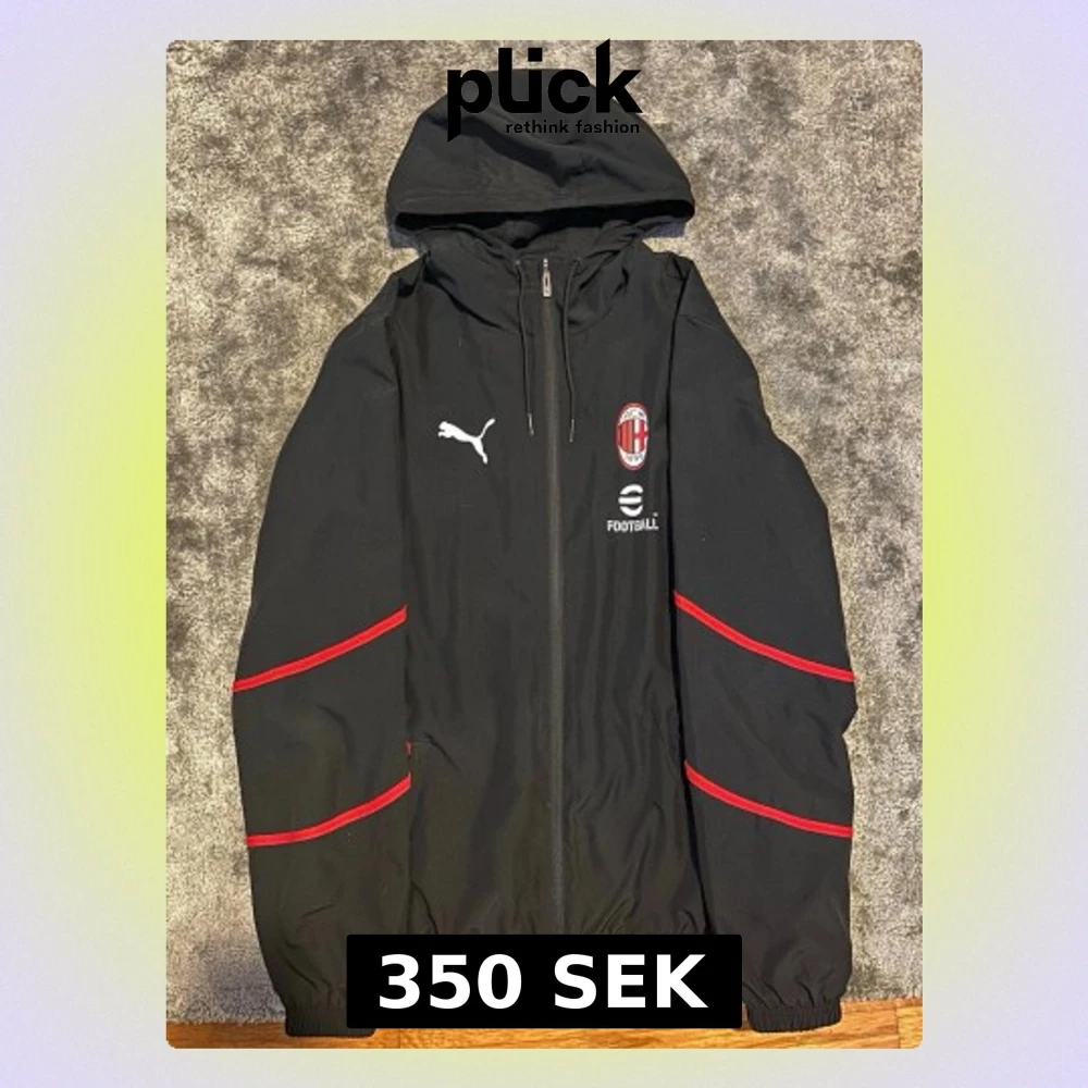 Säljer en svart AC Milan vindjacka från Puma. Som ny knappt använd har kvitto från JD sports väldigt bra skickt storlek S.