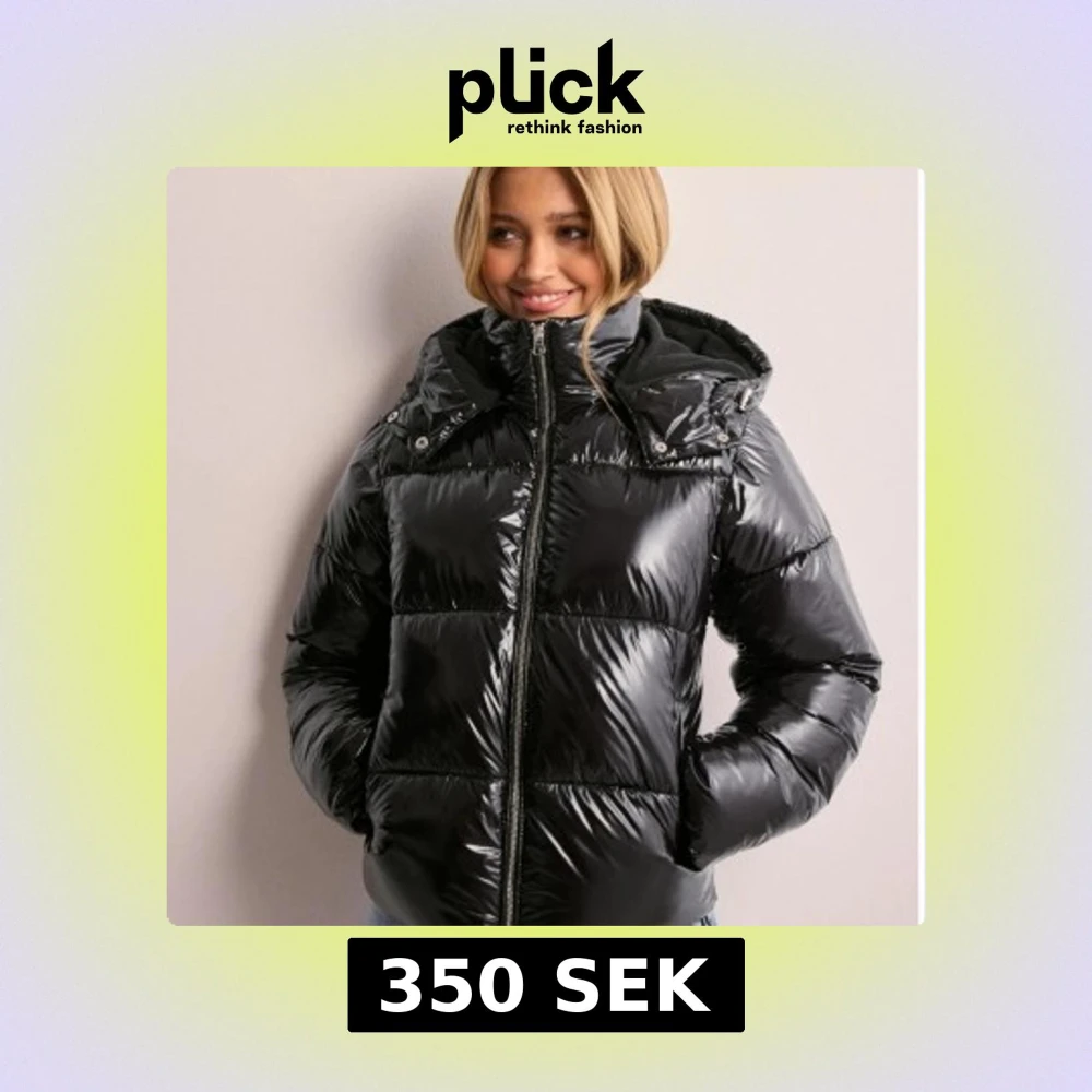 Snygg svart pufferjacka med glansig finish och dragkedja framtill. Jackan har en hög krage och huva för extra värme. Perfekt för kyliga dagar. Säljer den då jag har köpt en annan men använde den inte alls många gånger, i super skick dessutom!