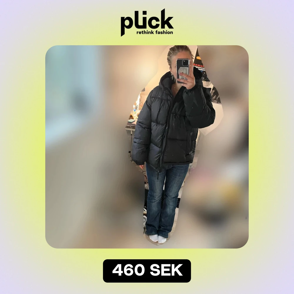 Säljer en svart pufferjacka i mycket bra skick. Den är perfekt för kalla vinterdagar med sin tjocka vaddering och långa ärmar. Jackan har en dragkedja framtill och en hög krage för extra värme. Den är oversized och ger en cool look. Passar perfekt till jeans och sneakers för en avslappnad stil.