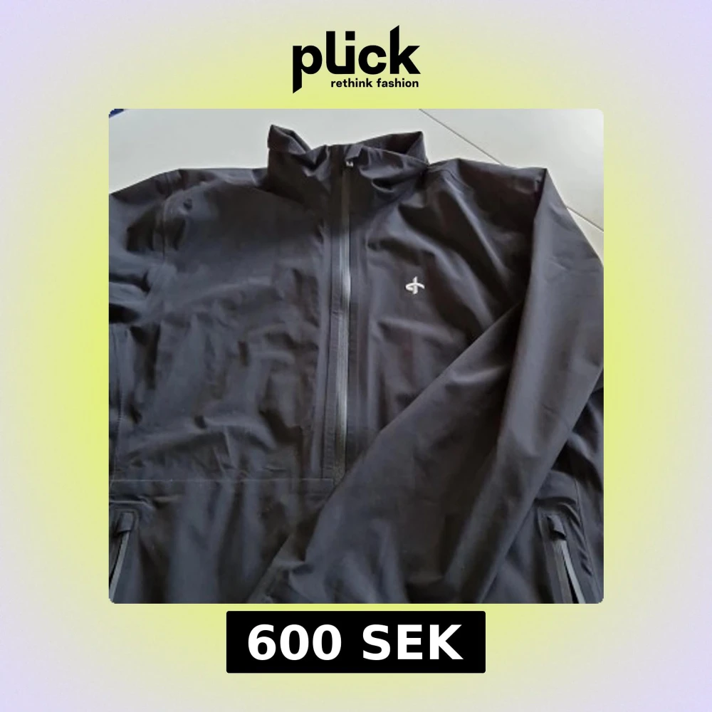 Säljer en stilren svart vind/regnjacka med diskret logga på bröstet. Jackan har dragkedja framtill, hög krage och två fickor med svetsade dragkedjor. Perfekt för blåsiga och regniga dagar på golfbanan. Använd 1 säsong så i mycket gott skick. Nypris på stadium ca 1200 kr.