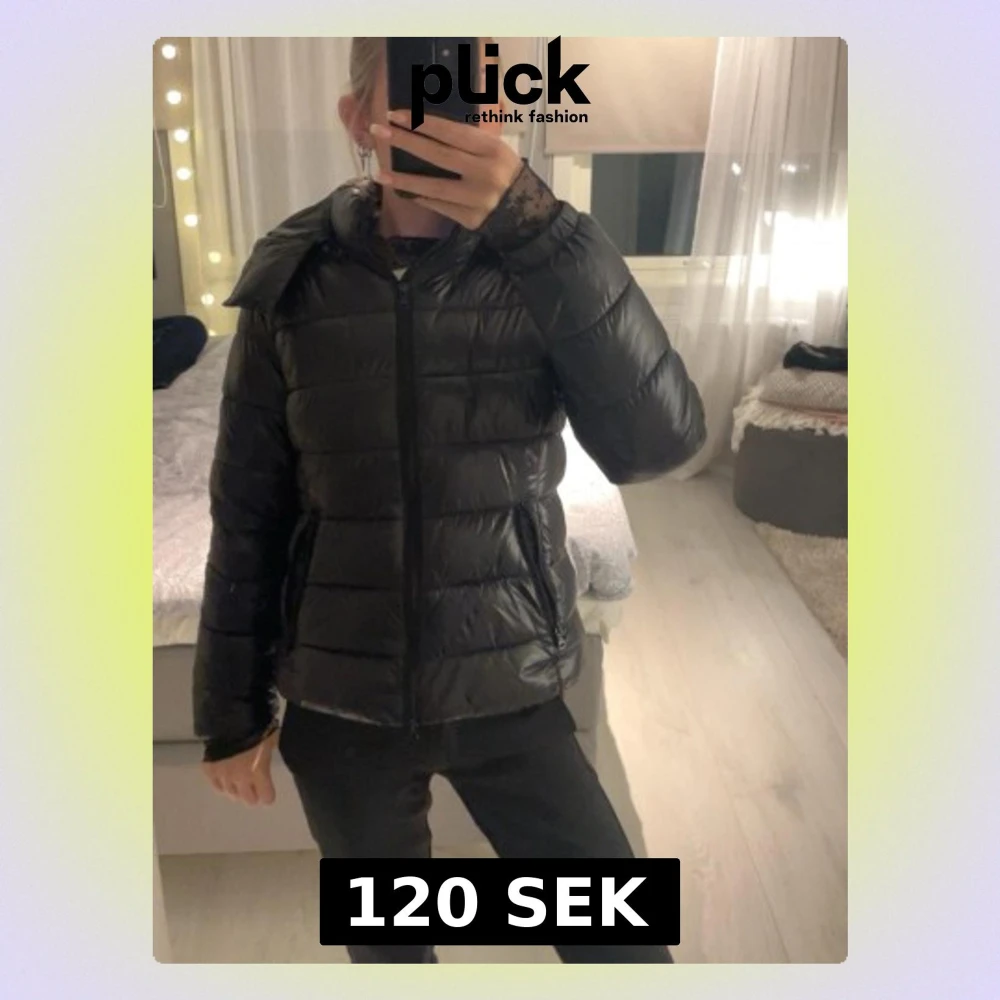 Säljer en svart pufferjacka från Lager 157. ( Ena sidan man stänger huvan till är en knapp av! ) Säljer för lågt pris, då jag bara vill bli av med den!