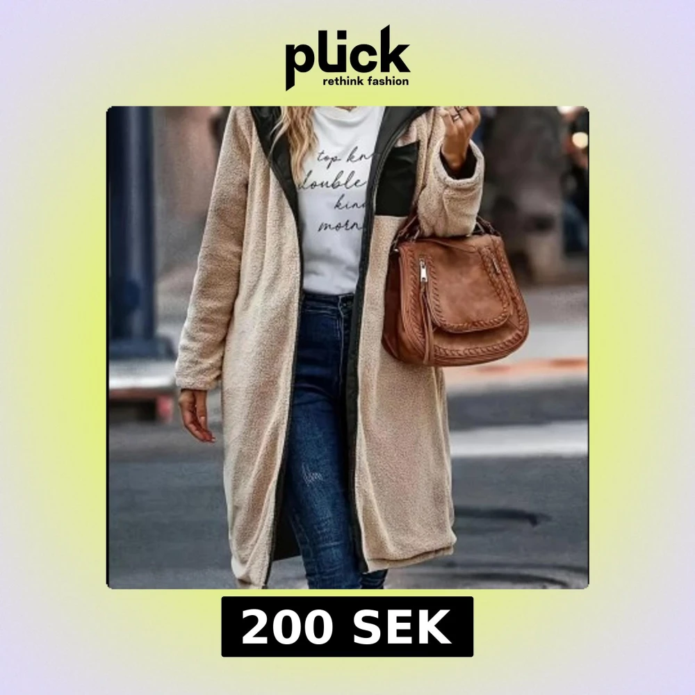 Säljer en lång och oversized teddyjacka i beige med svart quiltad insida. Jackan har huva, dragkedja och stora fickor. Går att använda den på båda sidorna, vänd den ut o in, blir två olika fina jackor🥰