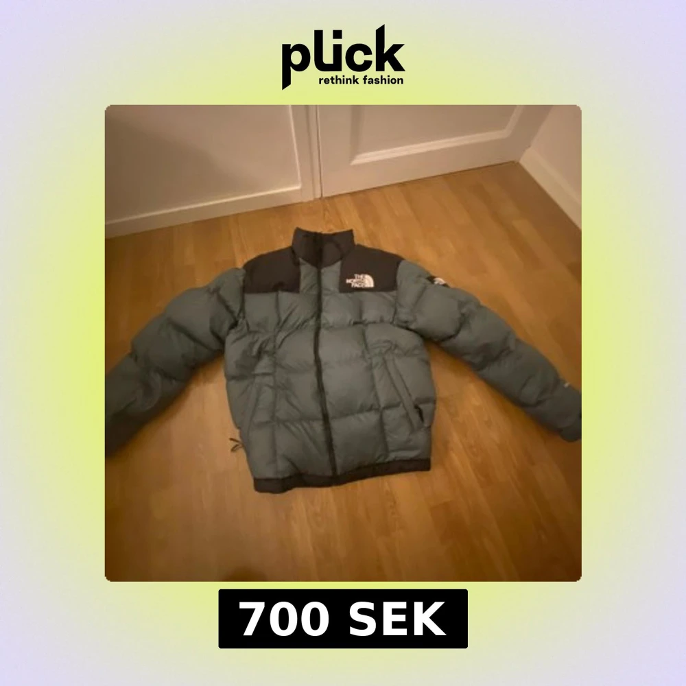 Säljer en grön och svart pufferjacka från The North Face med broderad logga på bröstet och ryggen. Jackan har hög krage, dragkedja framtill och två sidofickor. Perfekt för kalla dagar och har en riktigt schysst streetstil.