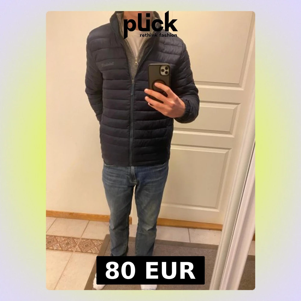 Säljer en mörkblå pufferjacka från Timberland i storlek M. Jackan har quiltad design, dragkedja framtill och stårkrage. Tillverkad av återvunnen polyester och är lätt att packa ner. Perfekt för dig som vill ha en clean och funktionell look.