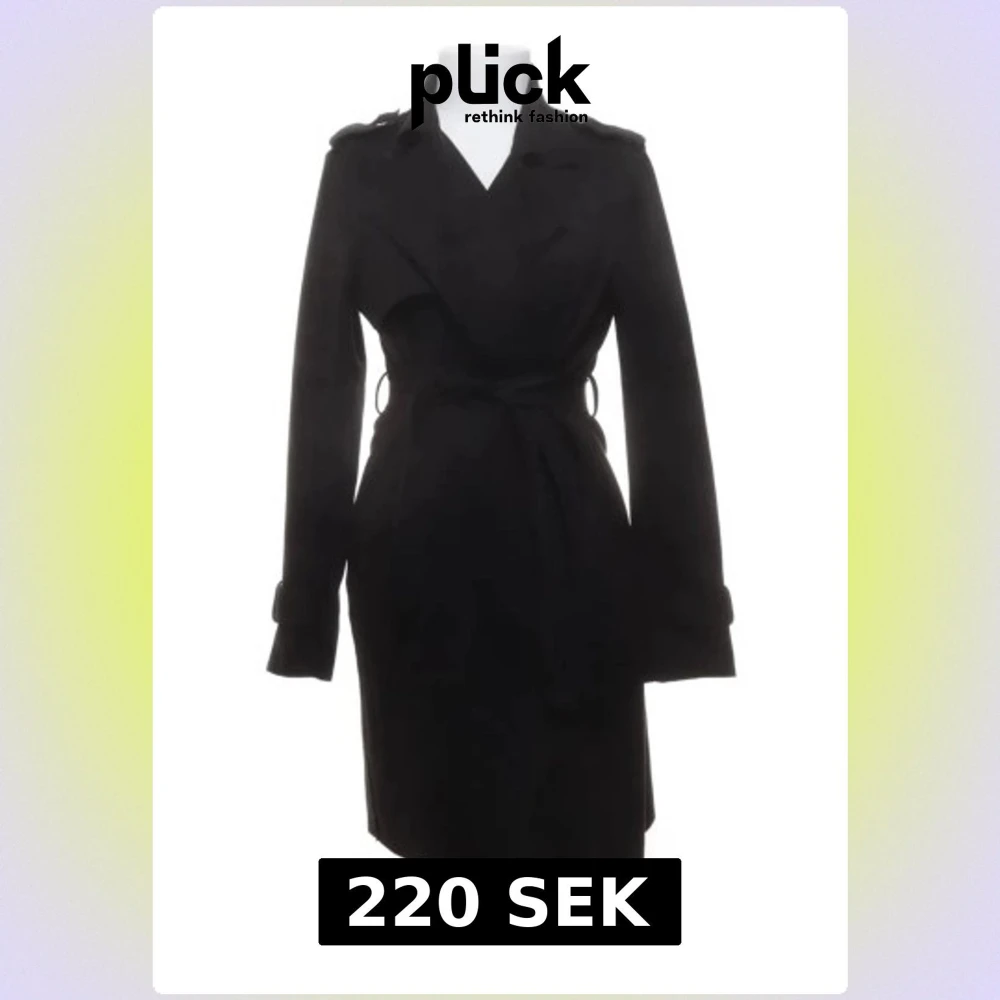 Snygg svart trenchcoat med klassisk krage och bälte i midjan. Jackan har långa ärmar med spänndetaljer vid mudden och axelklaffar som ger en cool siluett. Perfekt för dig som gillar stilrena och tidlösa plagg.