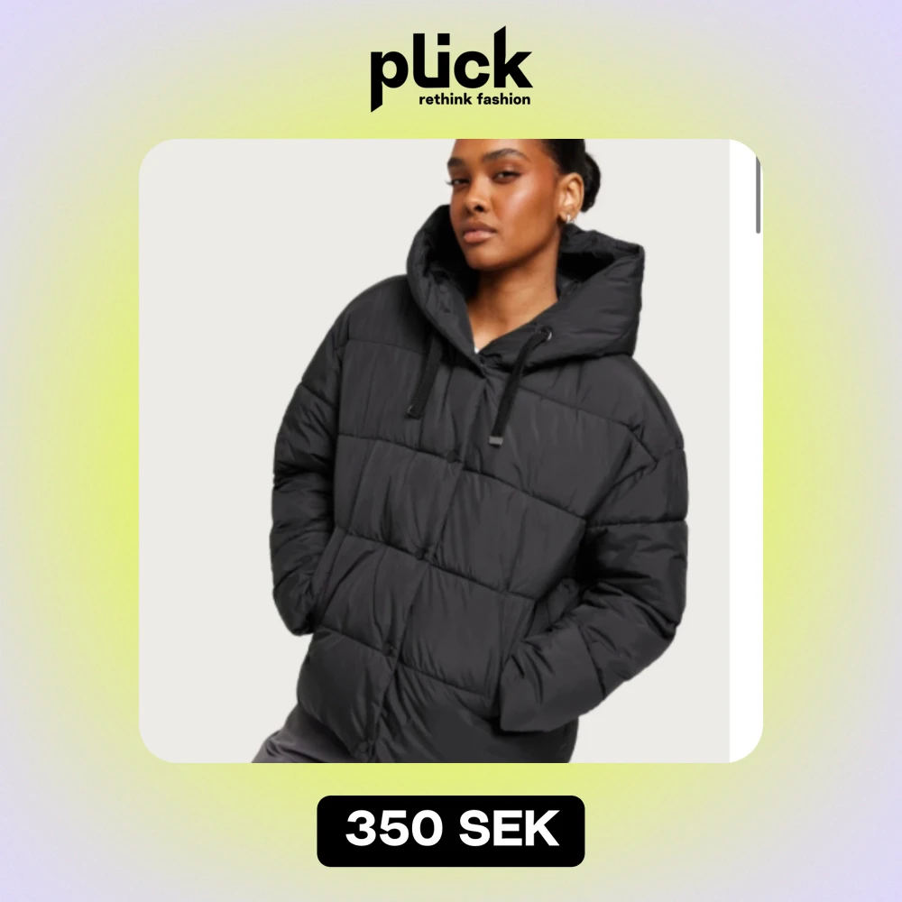 Säljer en svart pufferjacka i mycket bra skick. Den är perfekt för kalla dagar med sin varma och vadderade design. Jackan har en stor huva och långa ärmar, vilket gör den idealisk för vinter och höst. Den har en dragkedja framtill och är i en normal passform.