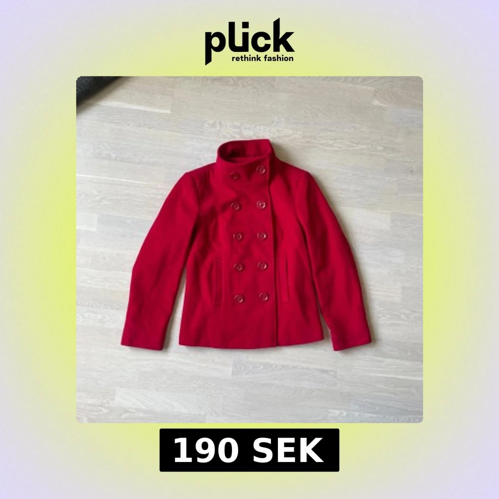 Snygg röd skepparkavaj från Marks & Spencer Portfolio med dubbelknäppning och hög krage. Jackan har långa ärmar, två fickor framtill och är tillverkad i ett mjukt tyg som känns lyxigt. Perfekt för dig som vill sticka ut med färg i höst och vinter.