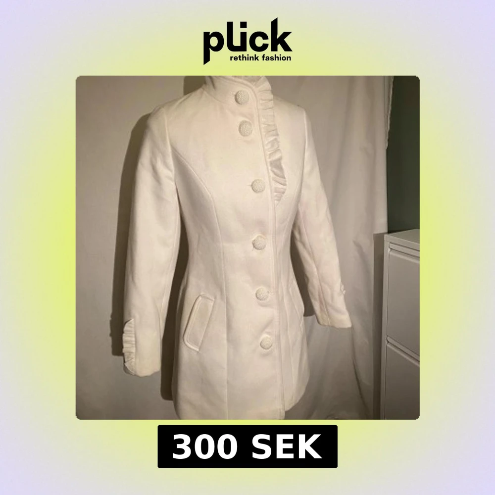 Köpt på second hand och använd men passar mig inte längre! Fickorna är uppsprättade så de går ner i fodret, men de var inte mycket att tala om ändå. Helt underbar passform, får en att känna sig som en isprinsessa (: ca storlek S