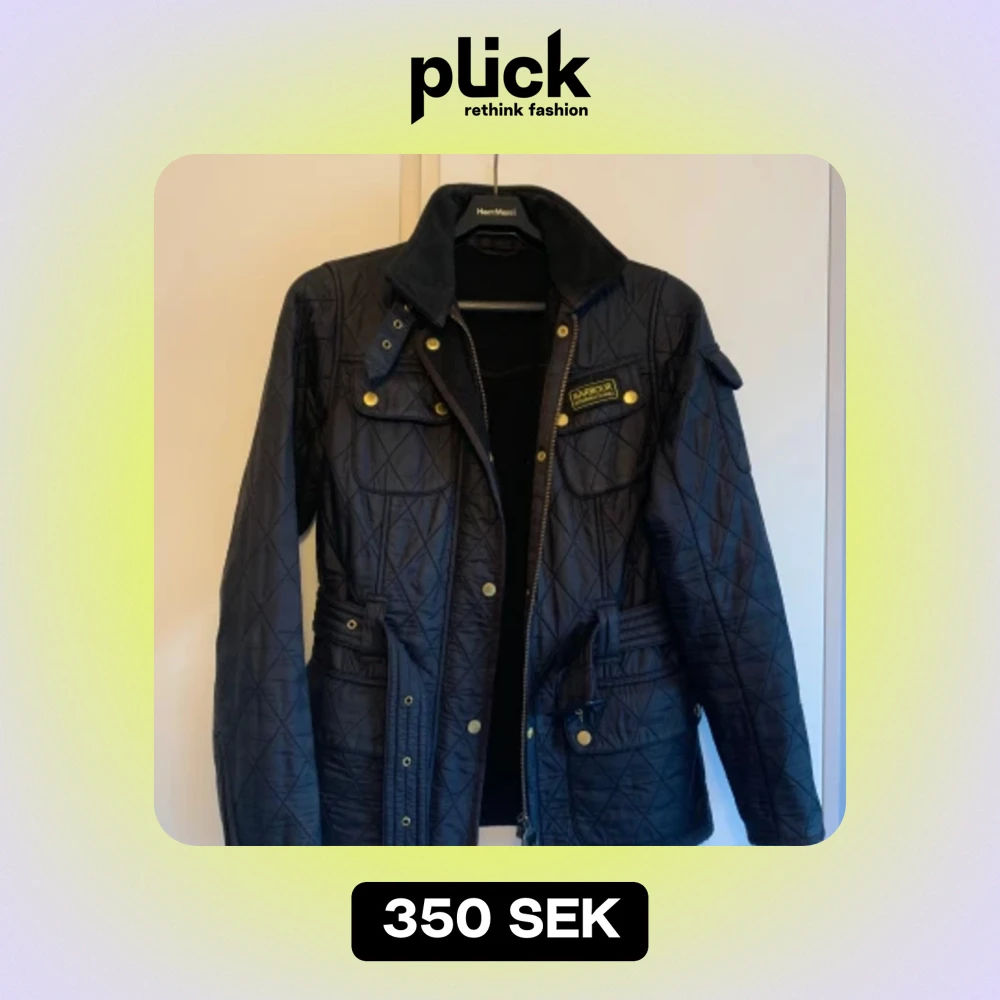 Svart, fodrad quiltjacka från Babour. Skärp i midjan. Bra använt skick. Stl 38.