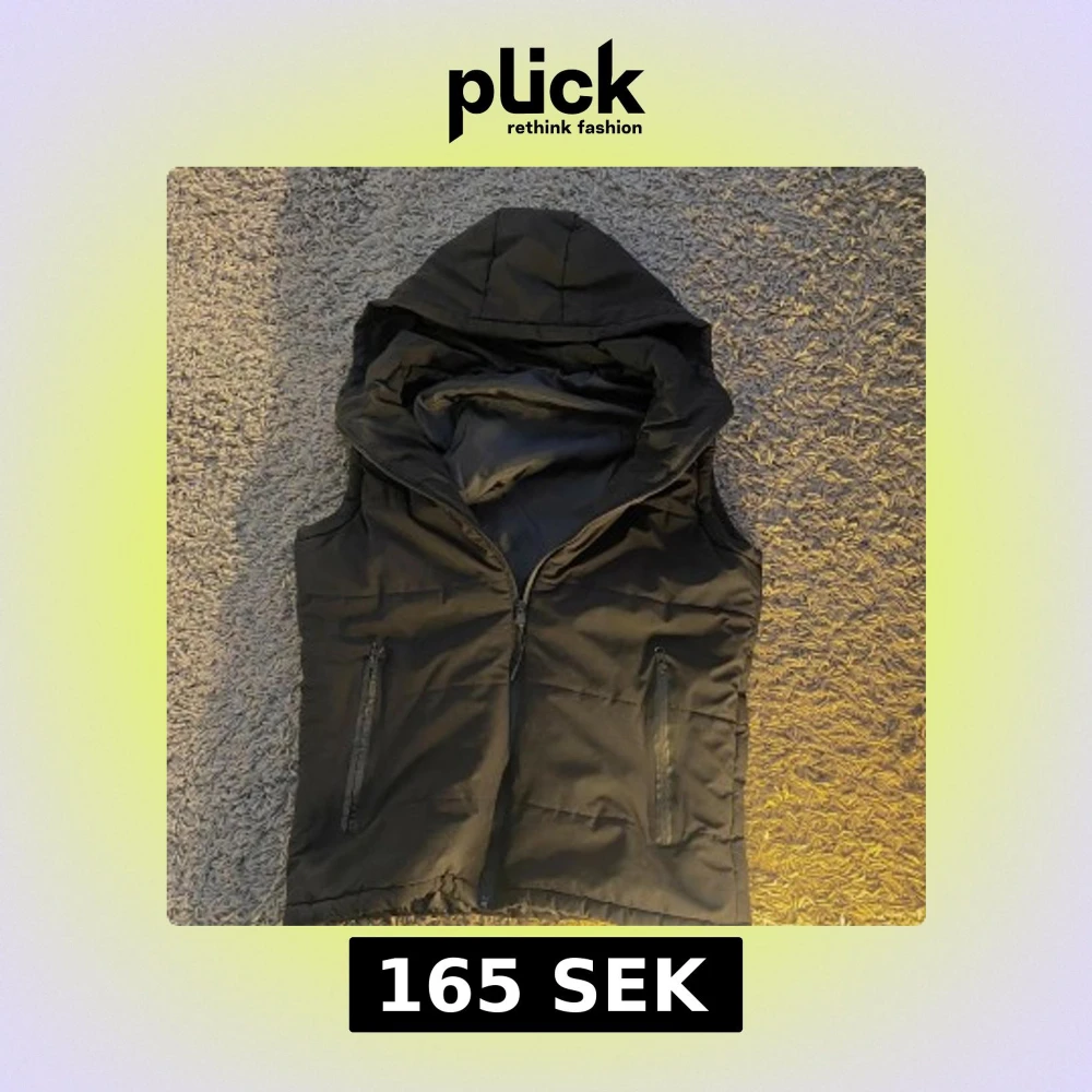 Snygg svart dunväst med dragkedja och praktiska fickor framtill. Västen har en huva som ger extra skydd mot väder och vind. Perfekt för kyligare dagar. Priset kan diskuteras