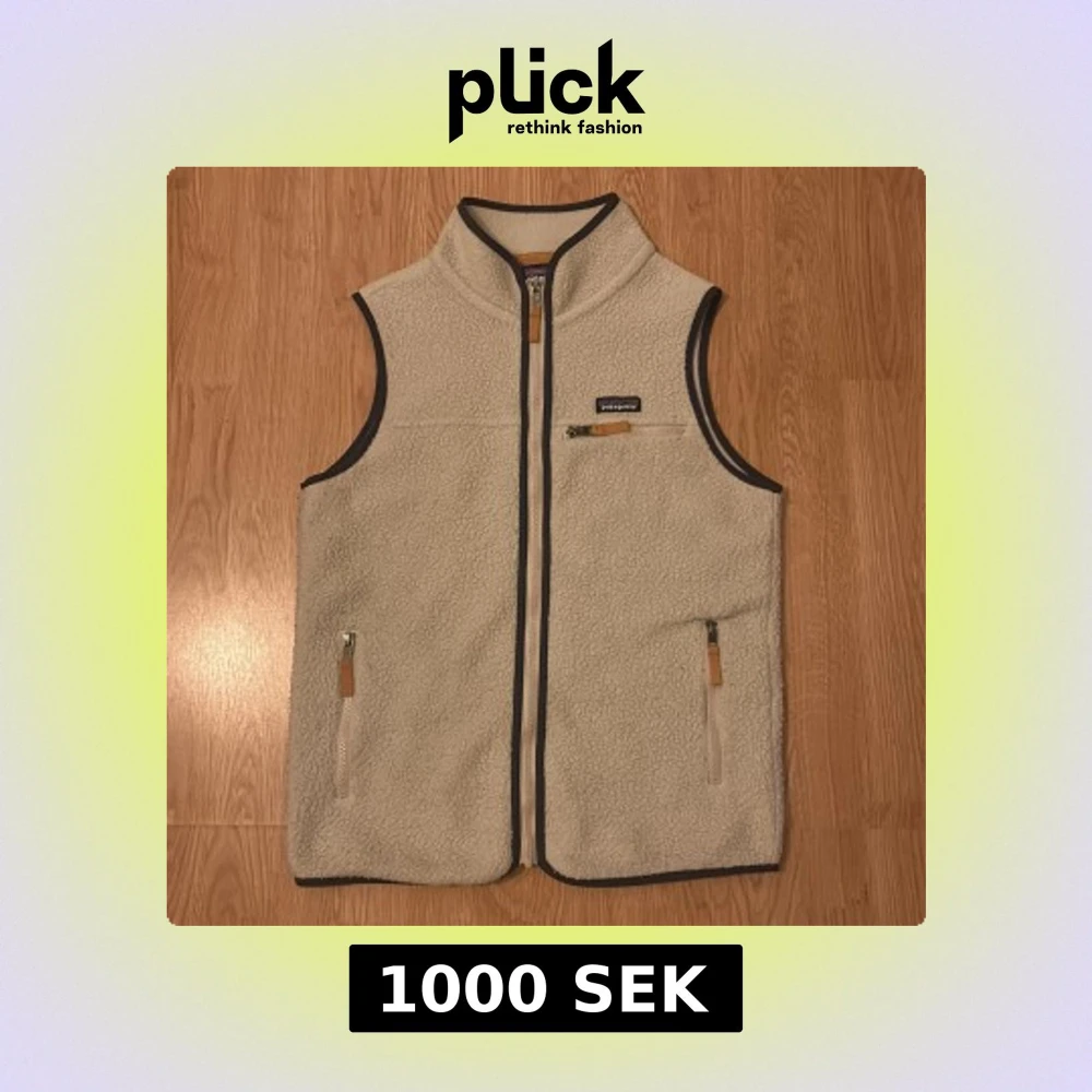 Säljer en beige fleeceväst från Patagonia i storlek M. Västen har hög krage, tre fickor med dragkedja och snygga kontrastdetaljer i mörkbrunt. Perfekt för lager-på-lager och outdoor-vibe. Klassisk Patagonia-logga på bröstet. Priset är inte hugget i sten!