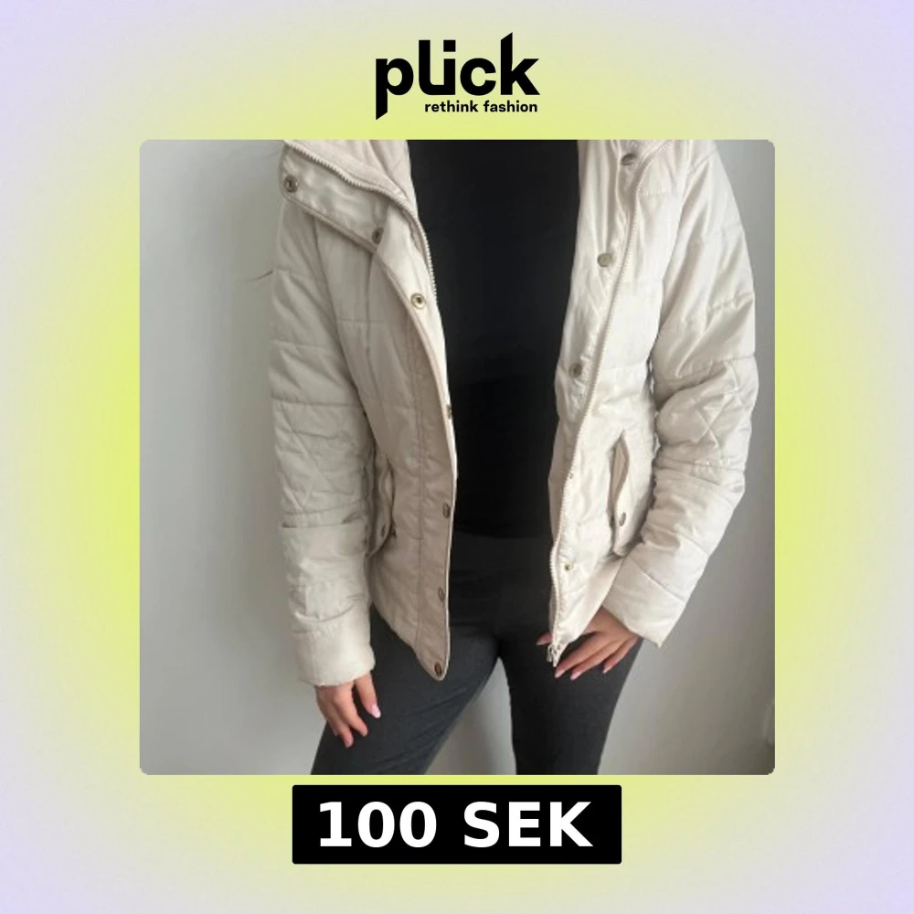 Säljer en beige quiltad jacka med både dragkedja och knappar framtill. Jackan har hög krage och långa ärmar, perfekt för kyligare dagar. Snygg och enkel att matcha till olika outfits.