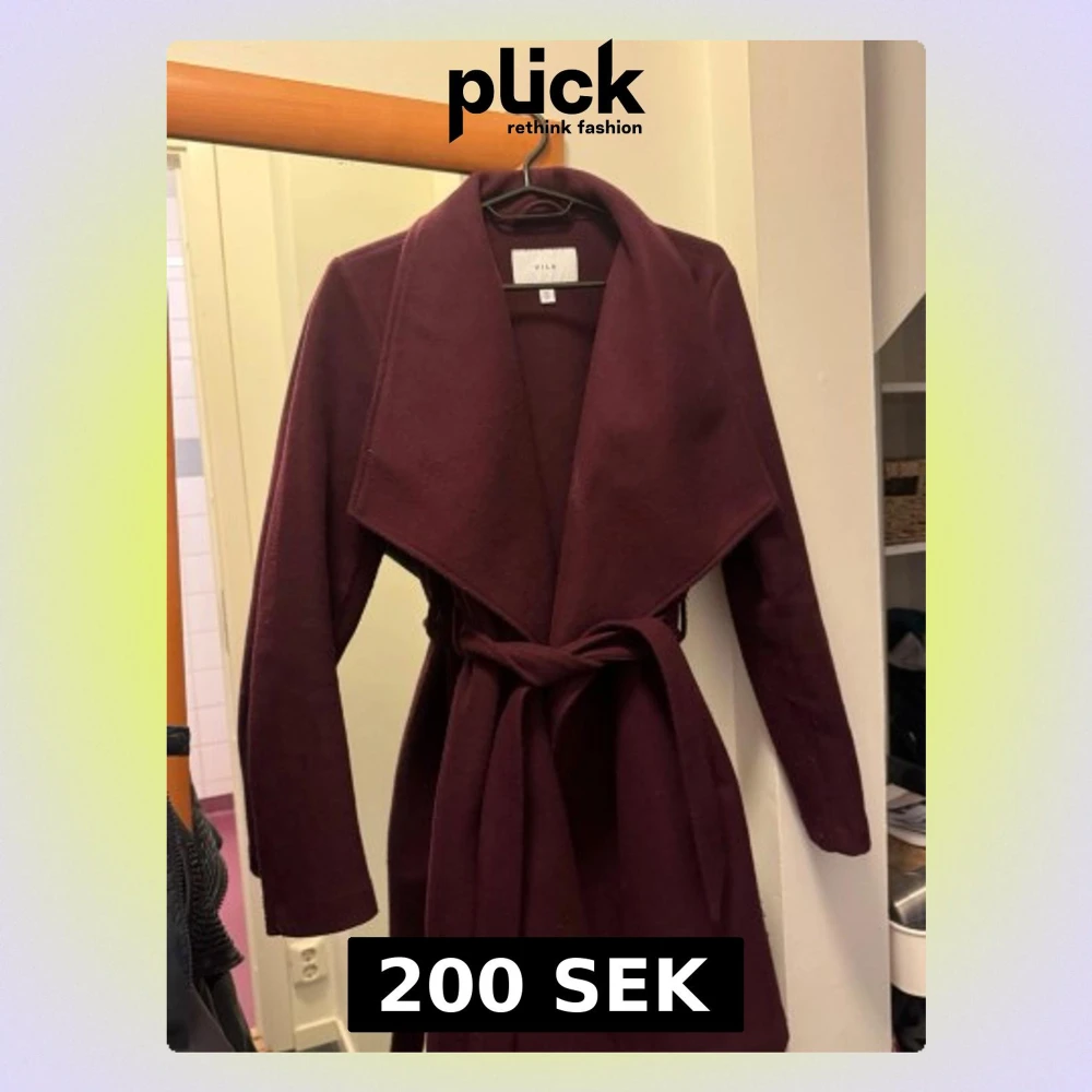 Snygg vinröd kappa från VILA i storlek 34. Jackan har ett brett slag, långärmade ärmar och ett matchande bälte i midjan. Perfekt för dig som gillar stilrena och klassiska plagg med en modern touch.