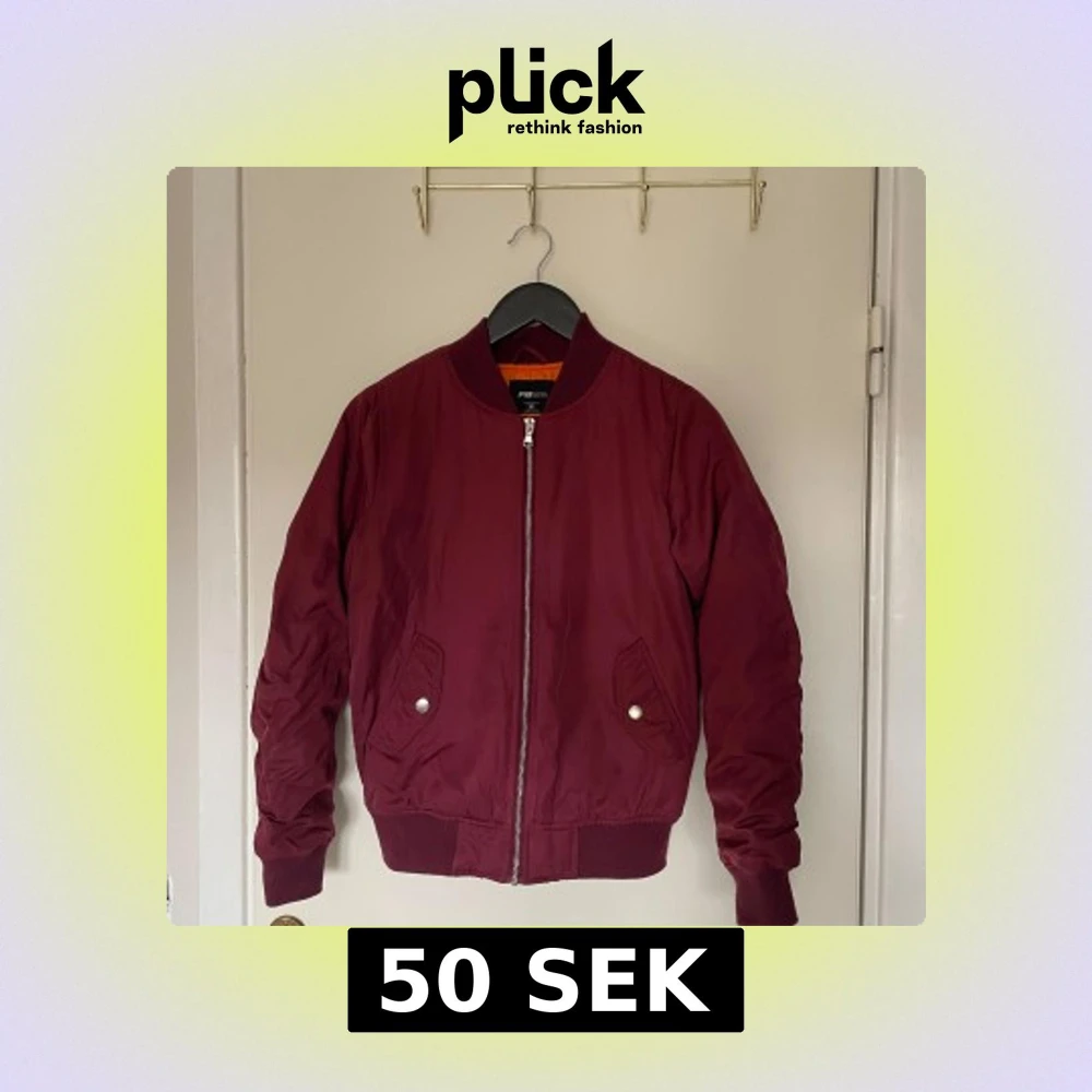 Vinröd bomberjacka, något fodrad/lite tjockare.
