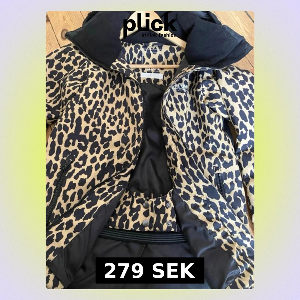Snygg skidjacka i nyskick från CLWR med leopardmönster i beige och svart. Jackan har svart huva, dragkedja framtill och två fickor med dragkedja. Perfekt för dig som vill sticka ut med en cool och trendig look. Snölås i midjan och ficka för liftkort! Nypris: 2.200kr, pris: 279kr, priset kan diskuteras vid snabb affär!😊