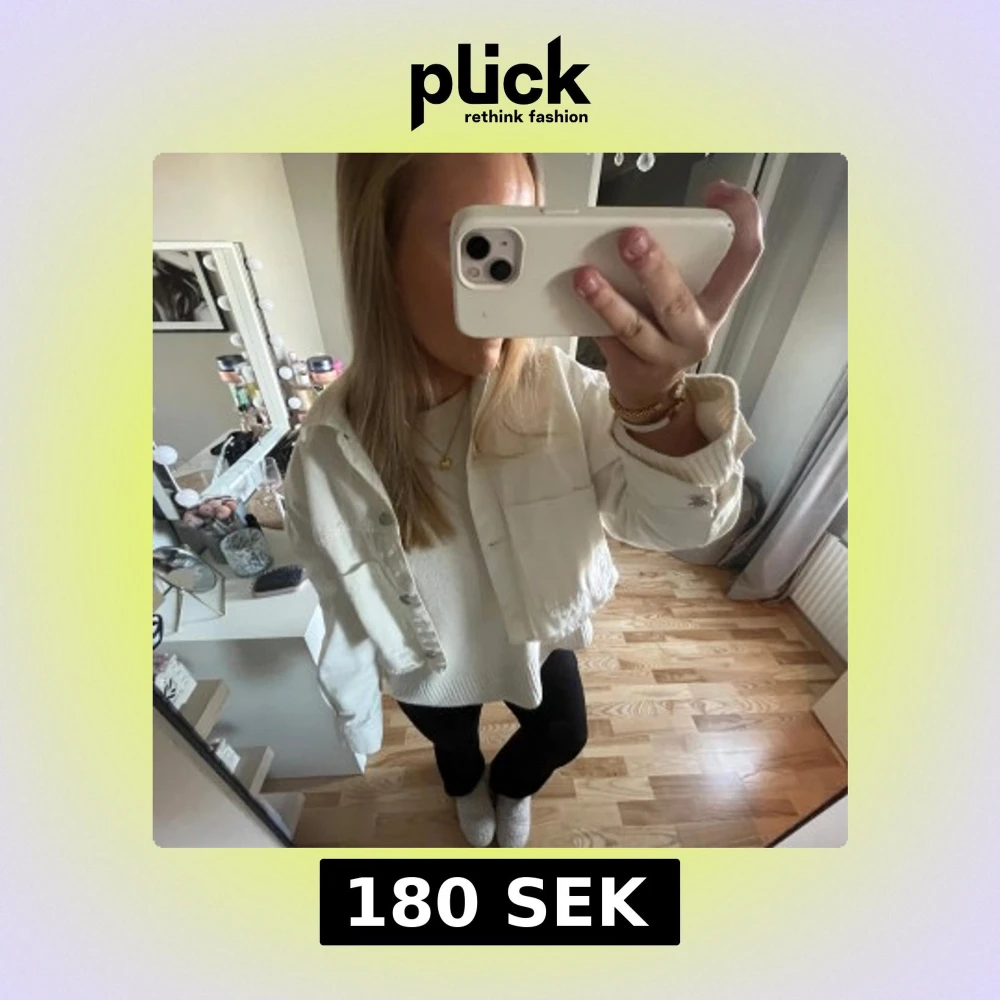 Säljer en stilren vit croppad jeansjacka. Köpt för ett bra tag sedan men bara använt en gång. Den är från hm men står ingen lapp med storlek på men om jag mins rätt tror jag det är M/L på den. Kan tänka mig sänka vid snabb affär. Hör av er vid frågor!🩷(köparen står för frakten)