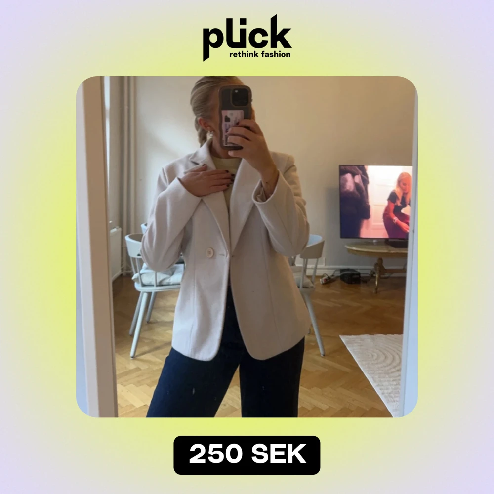Säljer en stilren beige/rosa kavajen i mycket bra skick. Den har en klassisk design med en knapp framtill och långa ärmar. Perfekt för både vardag och festliga tillfällen. Passar bra till jeans eller klänning för en chic look. Kavajen är i ett tjockare material som gör att den passar perfekt som jacka.
