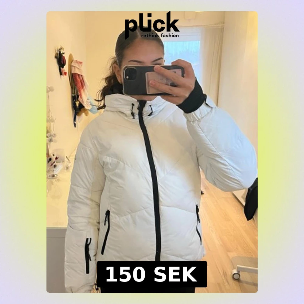 Snygg vit puffer dunjacka från McKinley med svarta dragkedjor och många fickor. Den är mycket varm och passar även perfekt som skidjacka. Går att knäppa i midjan och fästa vid händerna.