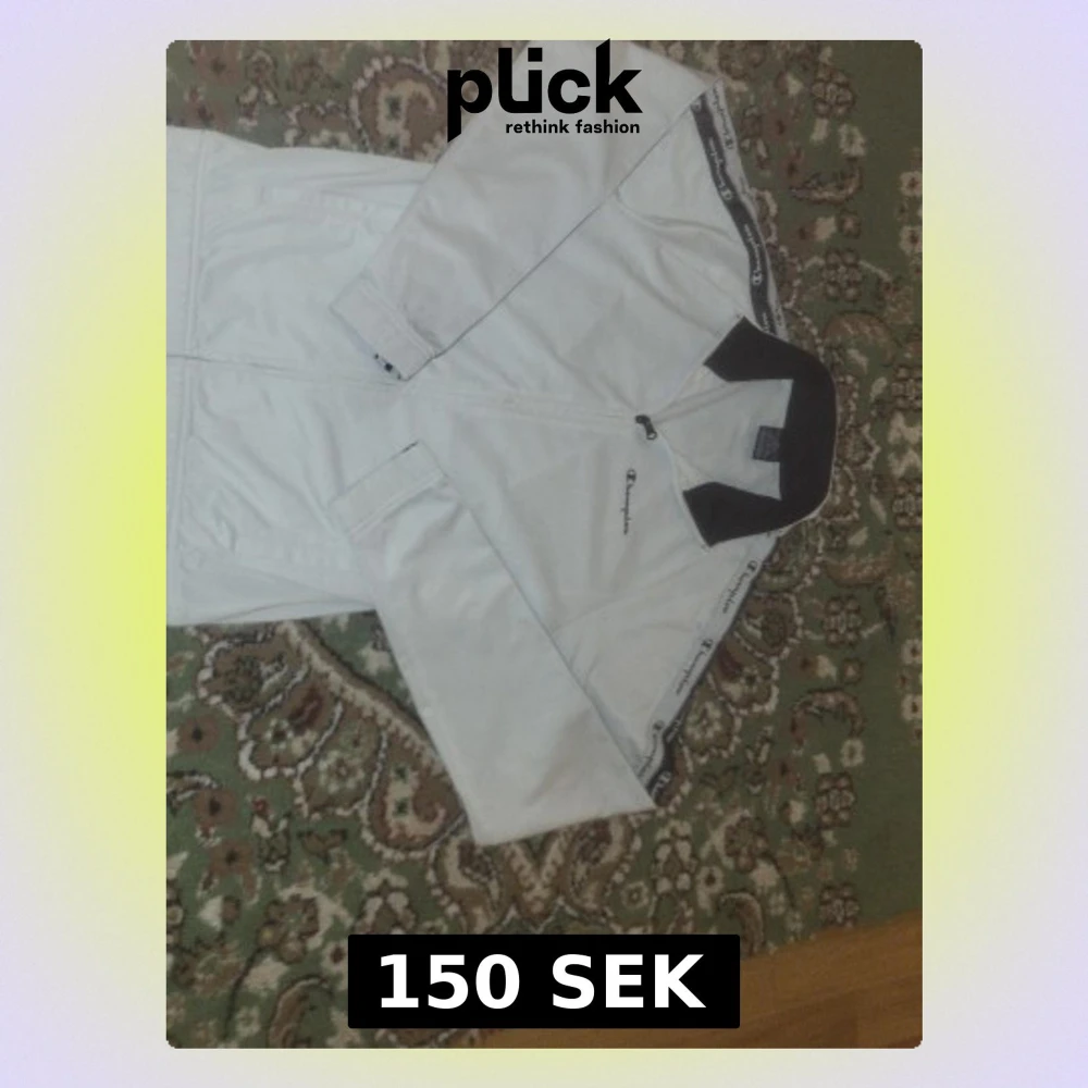 Snygg vit vindjacka från Champion med svart krage och diskret logga på bröstet. Jackan har dragkedja framtill och långa ärmar. Perfekt för dig som vill ha en stilren och sportig look.