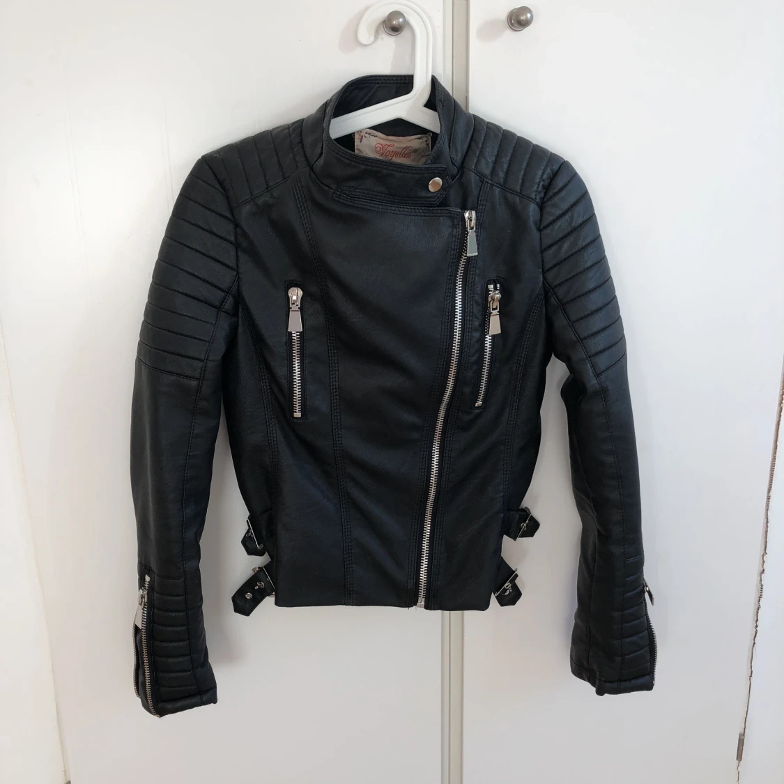 Jag säljer en jättefin skinnjacka från Voyelles men köpt på Chiquelle. Helt oanvänd!! Jag säljer den är för att jag inte använder den längre. Den är i storlek 36 men passar en som har 34. Betalningen sker via swish och köparen står för frakt!!❤️