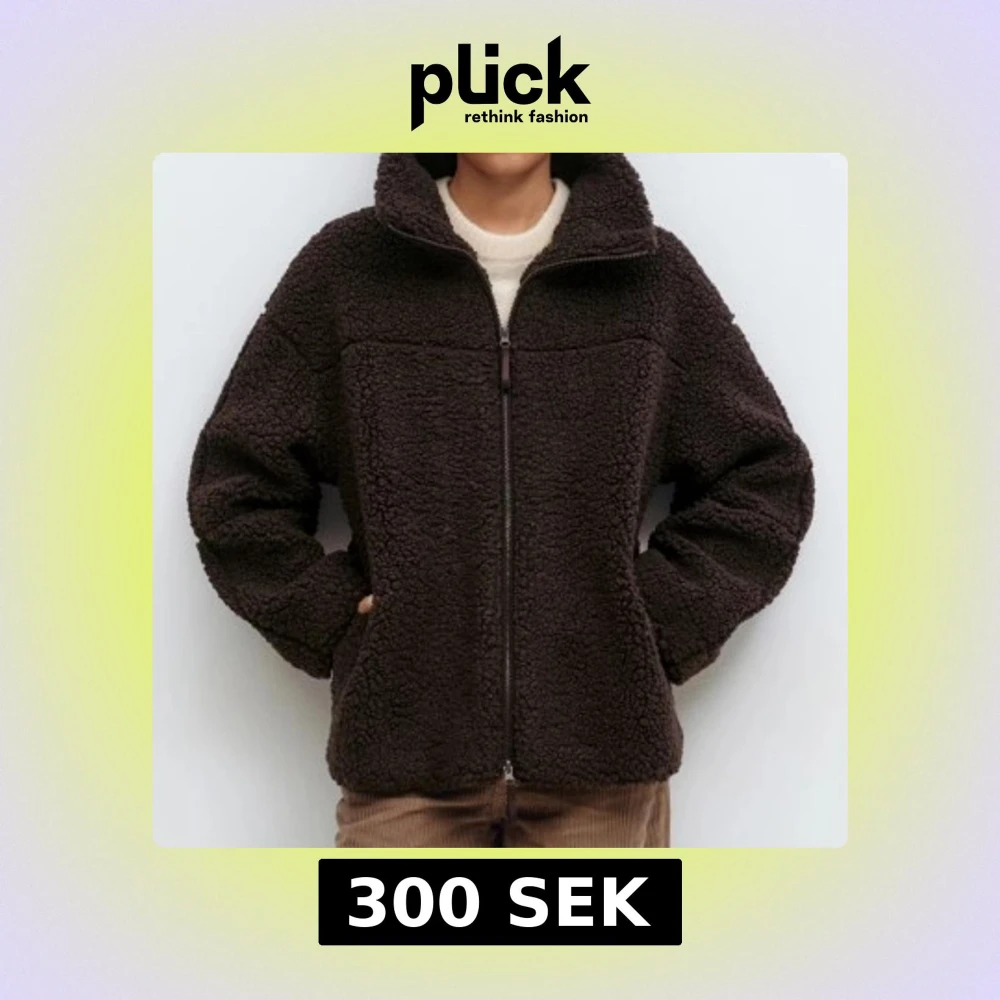 Mysig teddyjacka i mörkbrunt med hög krage och hel dragkedja framtill. Jackan har en loose passform och är tillverkad i mjukt fleece-material som håller dig varm. Perfekt för kyliga dagar och enkel att matcha med dina favoritjeans eller byxor.