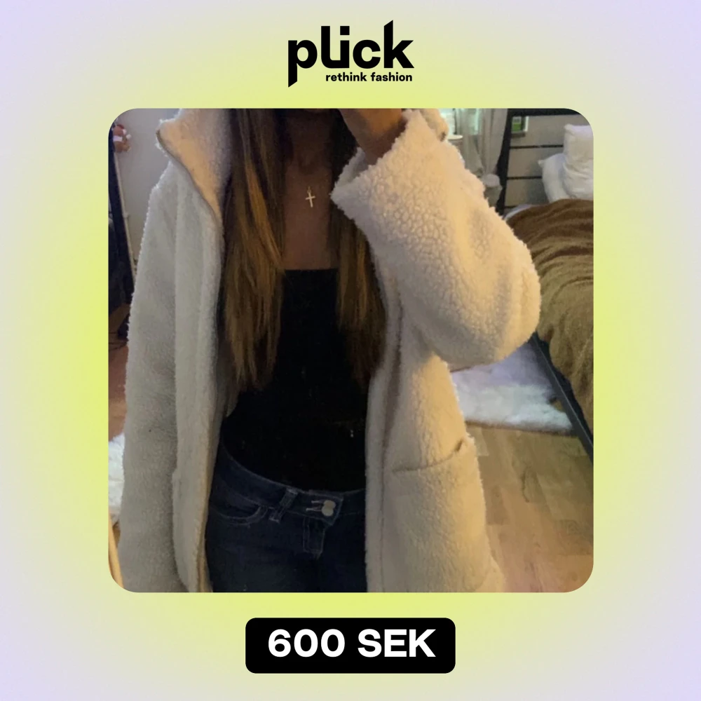Mysig vit teddyjacka perfekt för kyliga dagar.