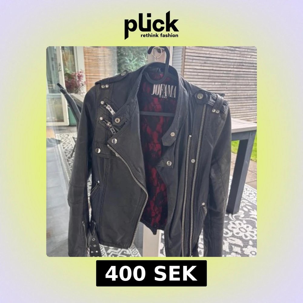 Säljer en svart skinnjacka från Jofama by Kenza med coola dragkedjor, axelremmar och bälte i midjan. Jackan har lång ärm och rödsvart innerfoder med mönster. Perfekt för dig som vill ha en edgy och tidlös look.