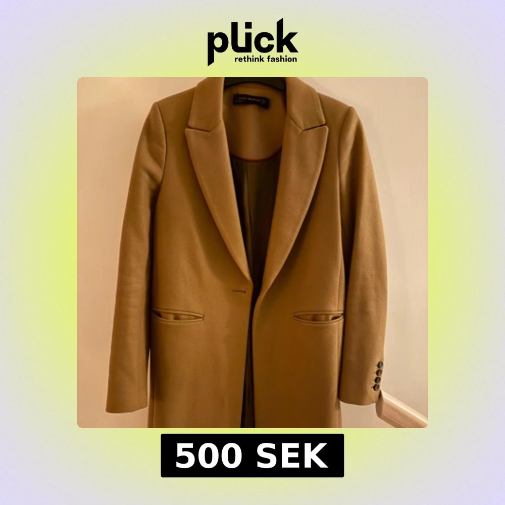 Stilren beige kappa från Zara Woman med klassisk krage och knäppning framtill. Jackan har två fickor och dekorativa knappar vid ärmsluten. Perfekt för dig som gillar en clean och tidlös look.