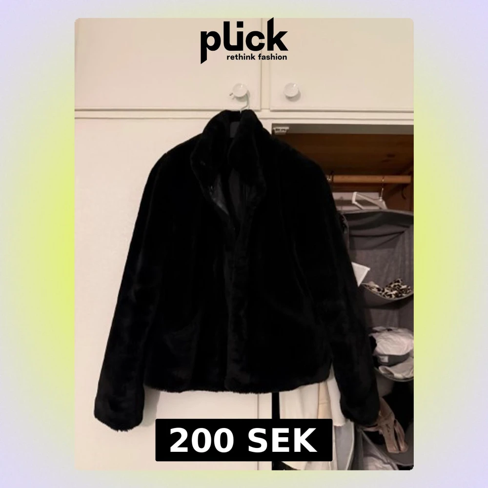 Säljer en svart pälsjacka med mjuk och fluffig känsla. Jackan har en klassisk krage och raka, långa ärmar. Perfekt för dig som vill ha en stilren och mysig look under kyliga dagar. Enkel design utan synliga detaljer på framsidan.