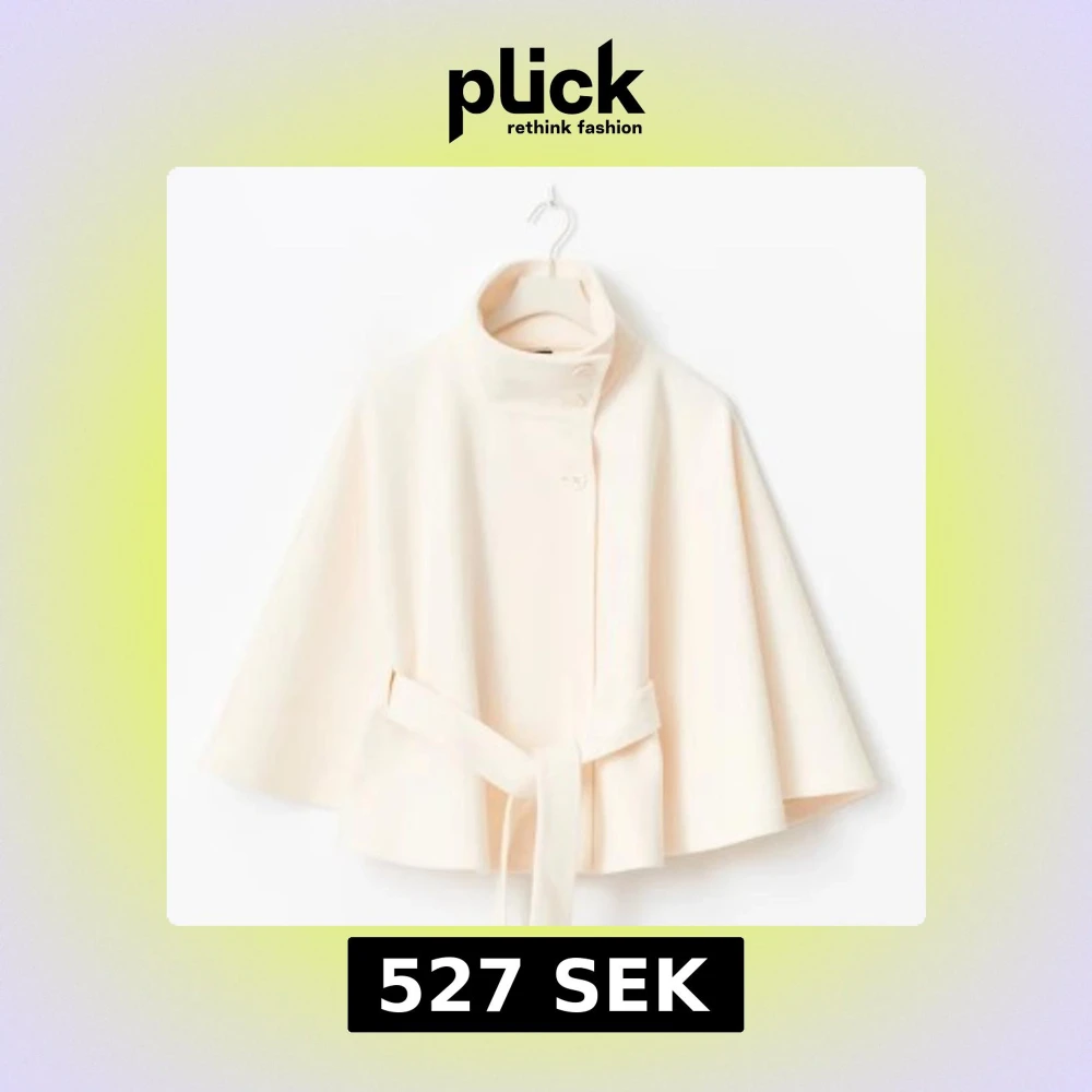Snygg beige poncho liknande kappa från Gina Tricot. Den har breda ärmar, hög krage och knappar framtill. Ponchon har ett matchande bälte i midjan som ger en clean och modern siluett. Perfekt för dig som gillar minimalistisk stil och vill ha något som sticker ut med sin coola form. Ångrade mitt köp men hade inte tagit med kvitto, prislapp finns kvar