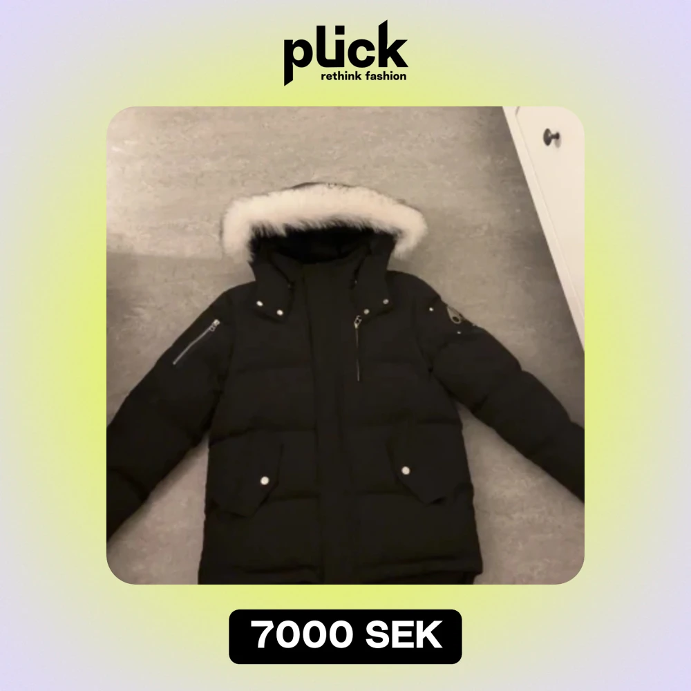 HELT NY! Säljer en snygg och varm svart dunjacka från Moose Knuckles. Jackan har en fluffig vit pälsdetalj runt huvan och är perfekt för kalla vinterdagar. Den har långa ärmar och praktiska fickor med dragkedja och knappar.