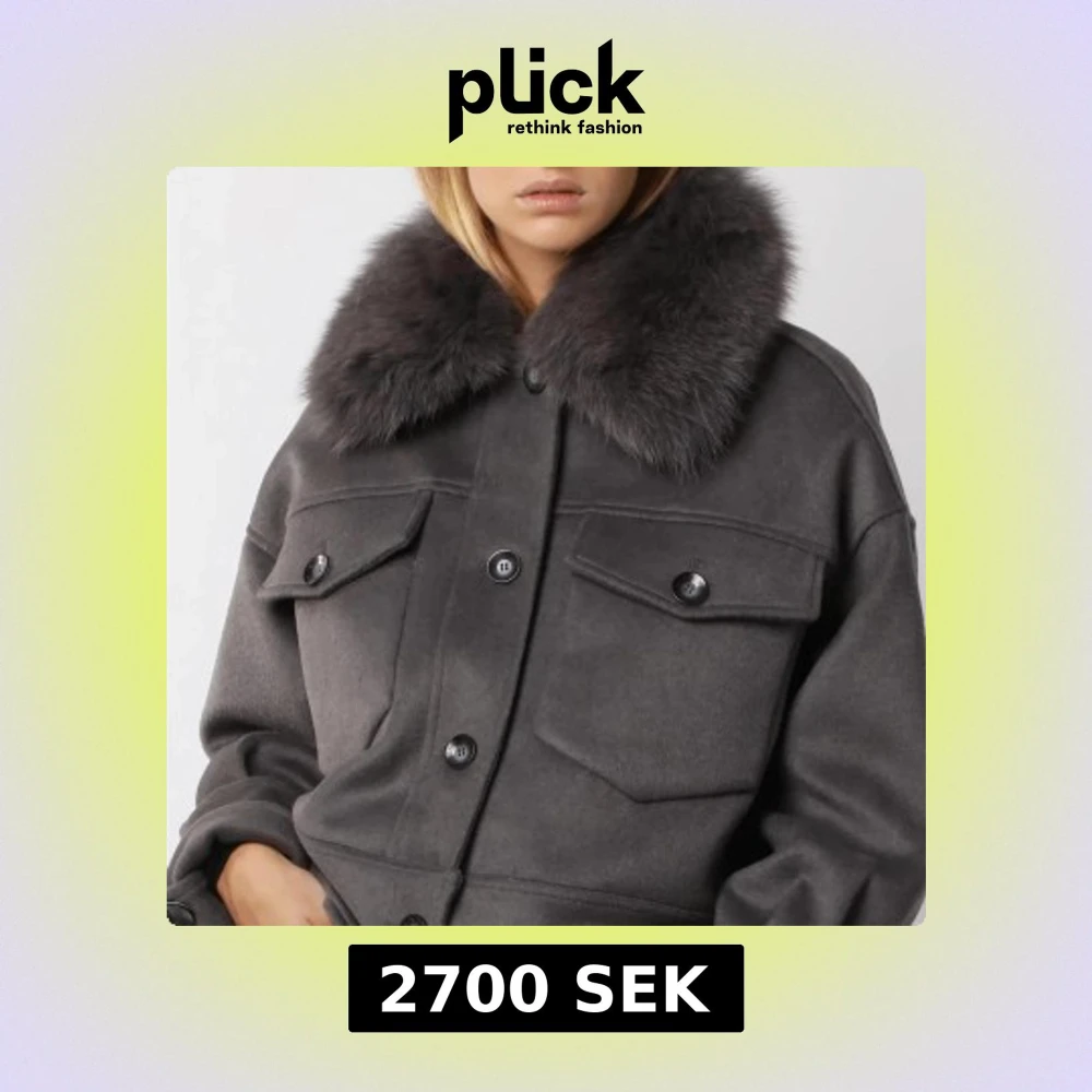 Mörkgrå kappa med päls