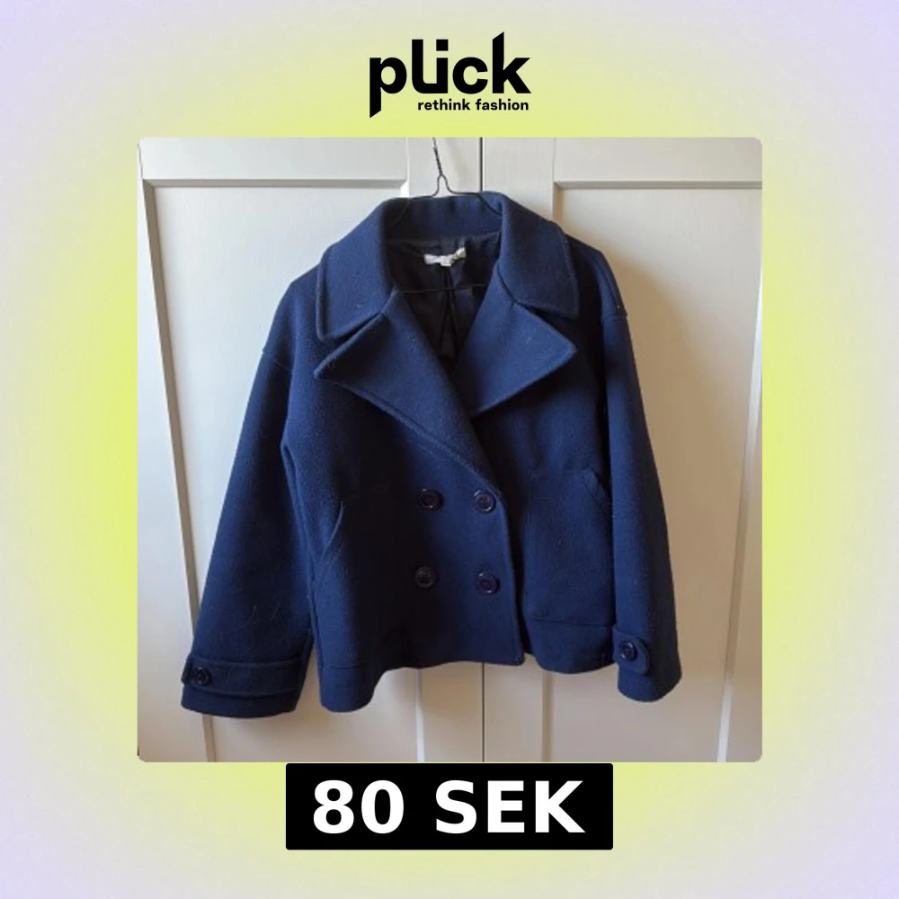 Säljer en mörkblå kappa från design by si i storlek XS/S. Jackan har dubbelknäppning, bred krage och stora fickor framtill. Tillverkad i ull med klassisk marin känsla och snygga knappar på ärmsluten. Perfekt till hösten som kommer!