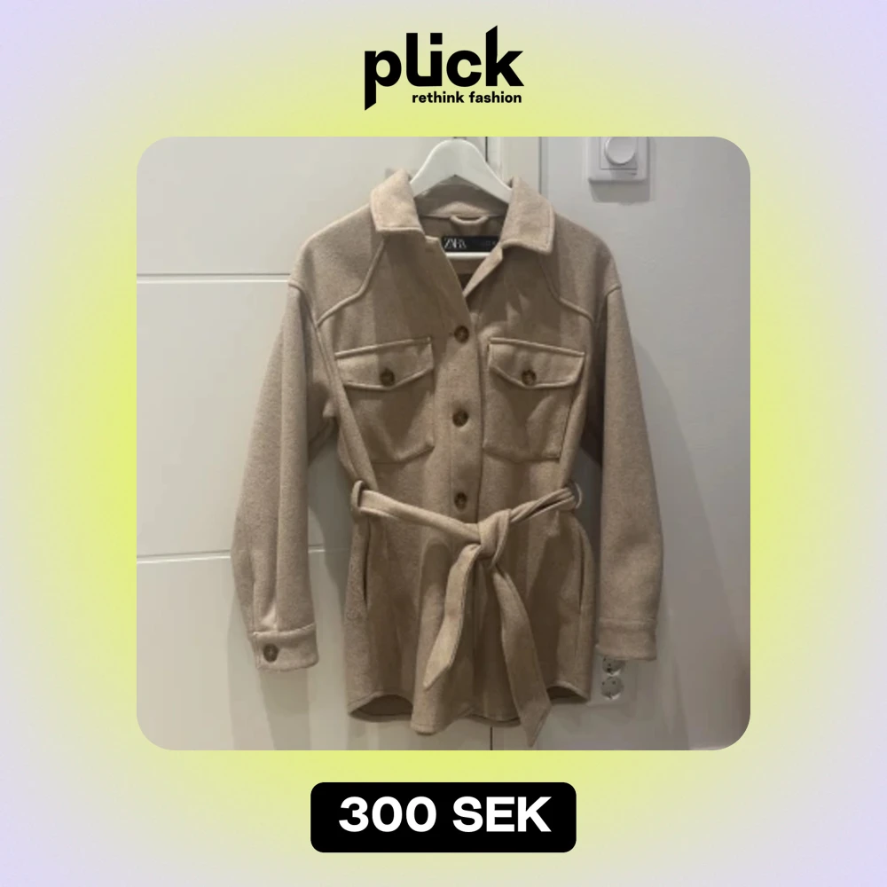 Zara jacka i färgen brun/camel. Med ett bälte i midjan. Jackan är i storlek xs