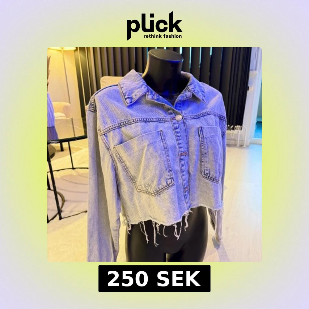 Trendig ljusblå jeansjacka från Zara med croppad passform och rå, fransig nederkant. Jackan har stora bröstfickor, klassisk krage och knäppning framtill. Perfekt för dig som gillar en edgy och avslappnad stil.