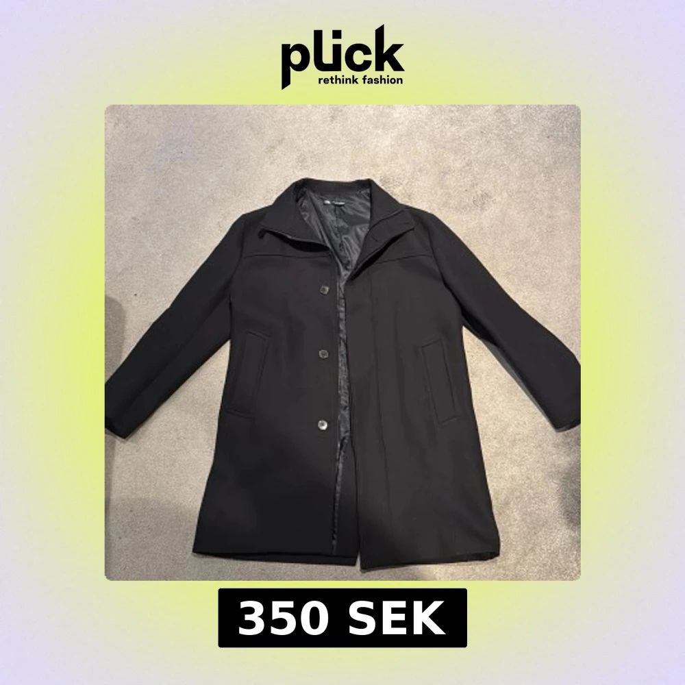 Stilren mörkblå rock från Zara med klassisk krage, dold dragkedja och knappar framtill. Jackan har två snedställda fickor och är helfodrad för extra komfort. Perfekt för dig som vill ha en clean och tidlös look under höst och vinter.