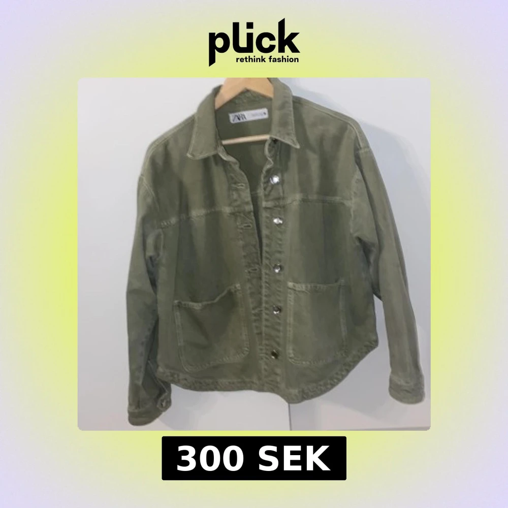 Snygg grön overshirt från Zara i bomull med klassisk krage, stora fickor framtill och silvriga knappar. Perfekt lager-på-lager-plagg med avslappnad passform och stilren look. Passar till både jeans och kjol.