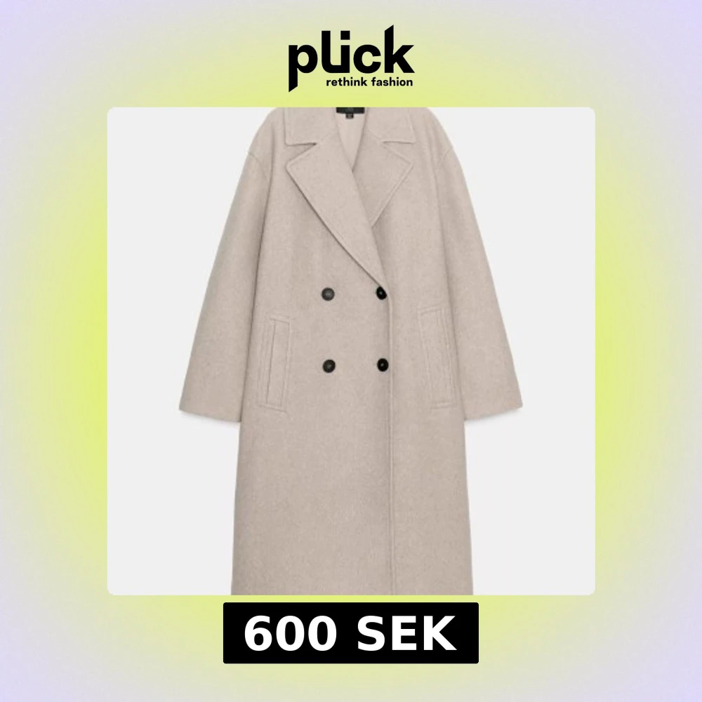 Snygg oversized kappa i beige ullmix från Zara. Dubbelknäppt med svarta knappar, breda slag och raka fickor framtill. Lång modell med detaljer vid ärmslutet. Perfekt för dig som gillar en clean och stilren look. Nypris 859💕