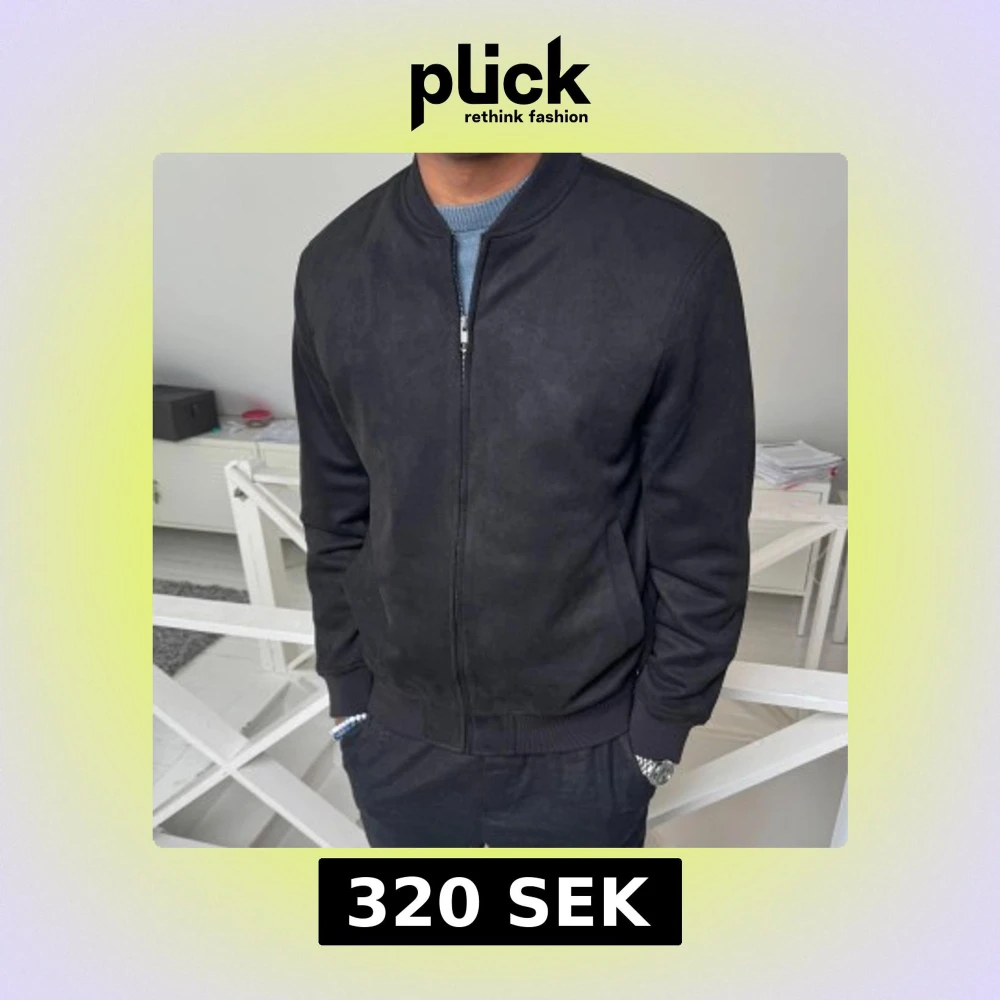 Säljer en stilren svart bomberjacka med dragkedja framtill. Jackan har ribbade muddar vid ärmslut, krage och nederkant. Passformen är normal och materialet känns mjukt och smidigt. Perfekt för dig som vill ha en klassisk look.