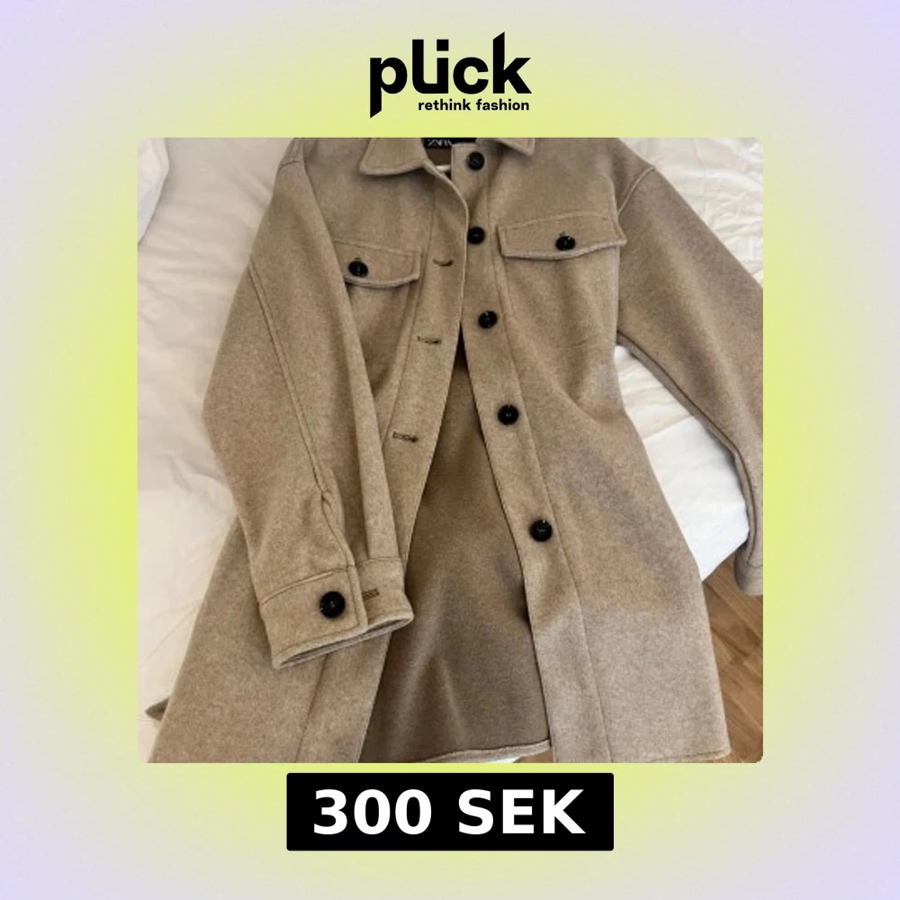 Snygg beige kappa med svarta knappar och knytband i midjan. Den har långa ärmar och två bröstfickor med lock. Perfekt för höst och vår!