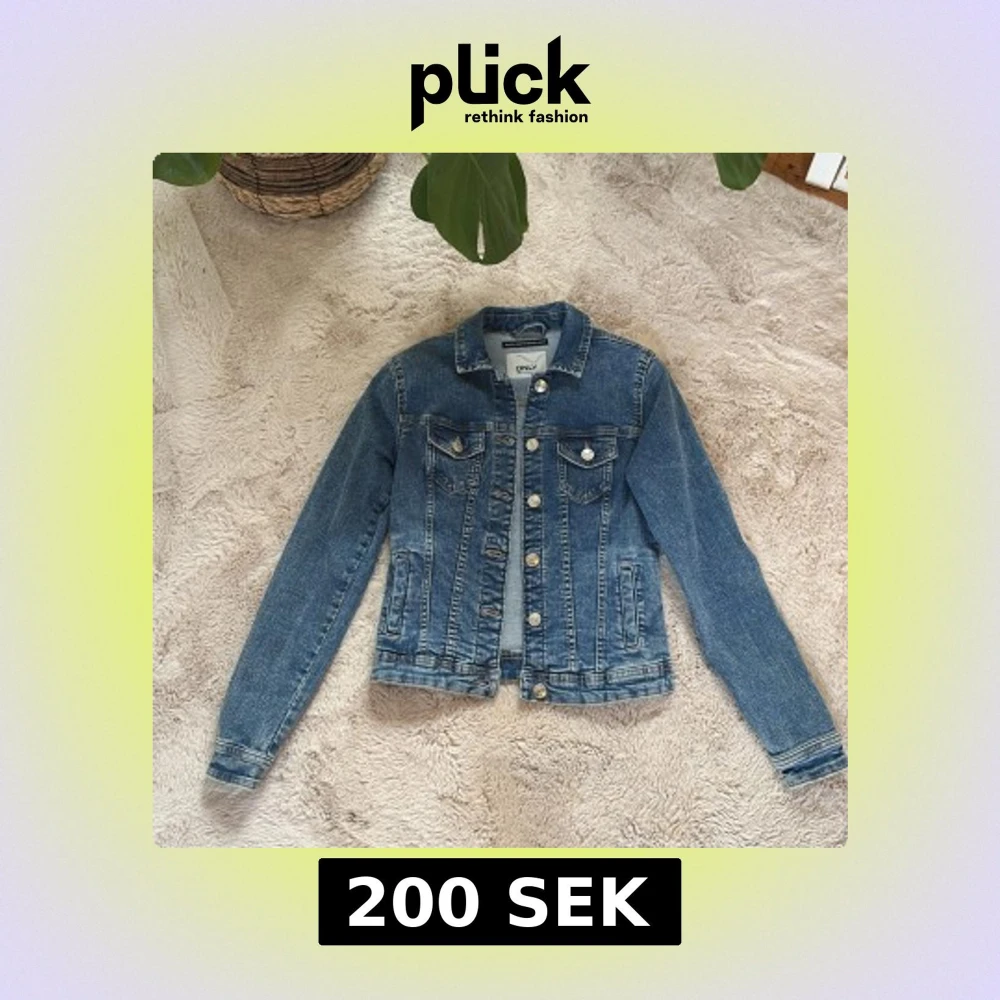 Snygg klassisk blå jeansjacka från ONLY i storlek 34. Jackan har silverfärgade knappar, två bröstfickor med lock och två sidofickor. Har andvänts en gång