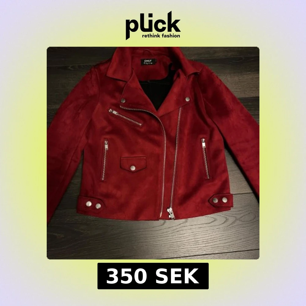 Snygg röd mockajacka från ONLY med coola dragkedjedetaljer och knappar. Jackan har en klassisk bikerstil med asymmetrisk dragkedja och flera fickor. Perfekt för att ge din outfit en edgy touch.