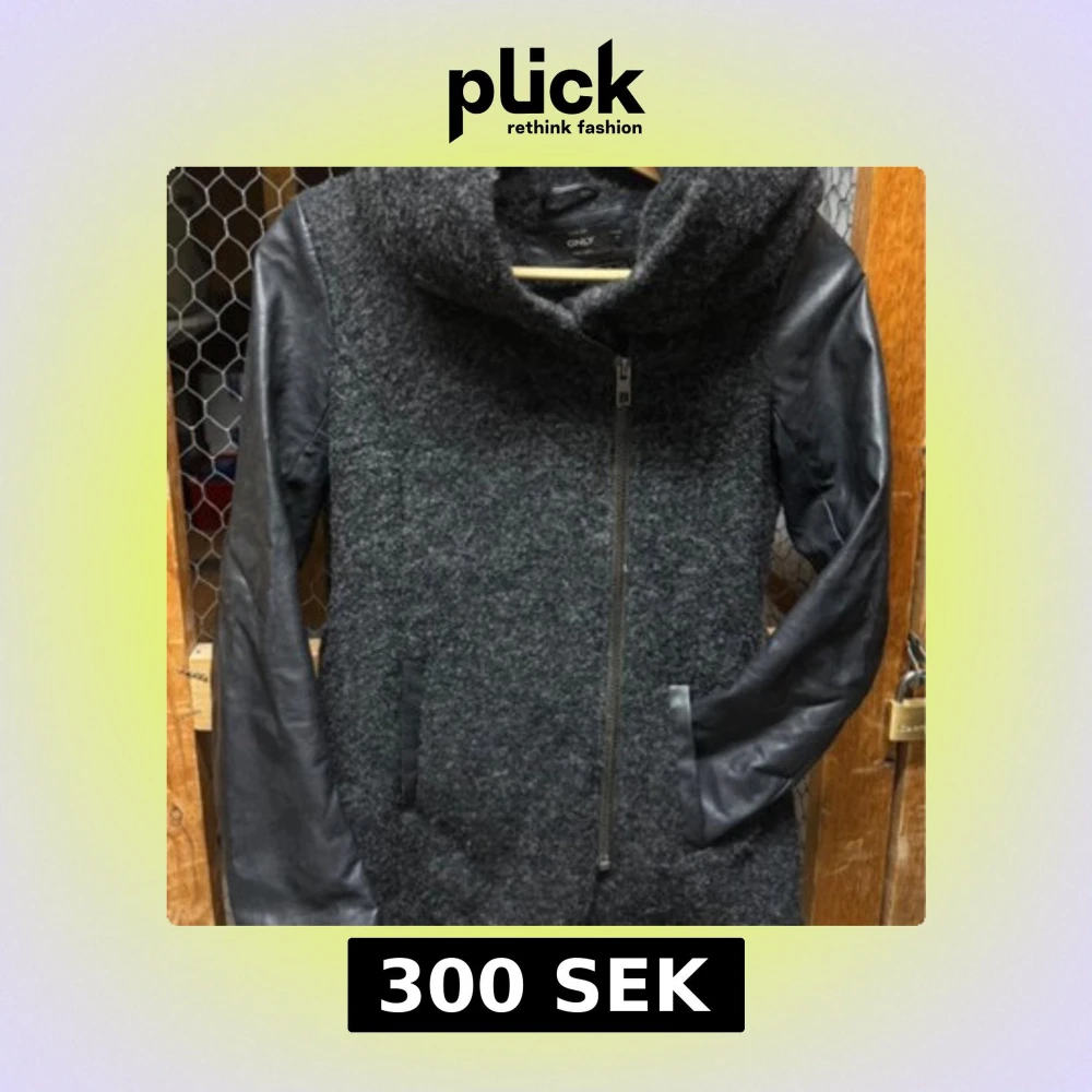 Snygg grå jacka från Only med coola svarta skinnärmar och stor huva. Jackan har dragkedja framtill och två fickor. Perfekt för dig som gillar en urban och stilren look.